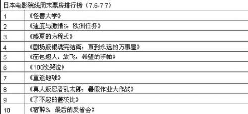 进入7月,炎热的暑假真正到来,日本电影市场也以适合儿童观看的动画片或者其他儿童片打头阵。本周上映的五部新片就有四部是动画电影或者真人版改编的动画人物故事,掀起了霓虹国电影市场暑期档第一波热浪。