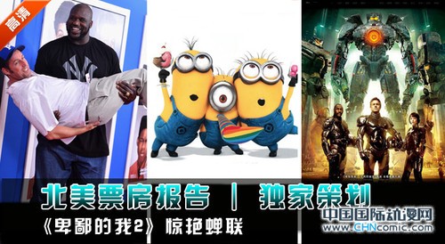 上周北美共有2部新片大规模公映,分别是由吉尔莫·德尔·托罗执导的科幻怪兽巨制《环太平洋》和亚当·桑德勒领衔的喜剧续集《长大后2》。最终,恶评如潮的《长大后2》以4200万的开画成绩击败了口碑颇佳的《环太平洋》,但却未能阻止《卑鄙的我2》以4470万的次周末佳绩蝉联冠军。以下请看详细报道: