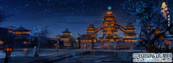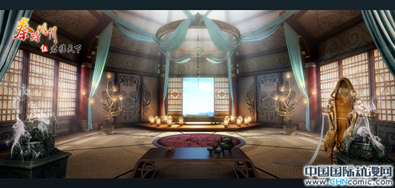 欣赏过雀阁的原画设定,再奉上经建模及后期制作完成的场景CG图。此番,玄机团队充分运用了4K级的画面品质素材进行制作,令画面表现力获得大幅提升。袅袅升腾的烟雾、古朴的紫檀桌案、柔和的灯火点点等细节之处,令人不难看出,此时的雀阁在充分还原原画艺术风格的基础上,细节更丰富、更细腻,材质则更逼真。自然界的状态,如黑夜白昼的交替、阴晴雨雪变化等,也都能真实、细腻地反映在场景中,营造真实摄影般的气氛和观感。