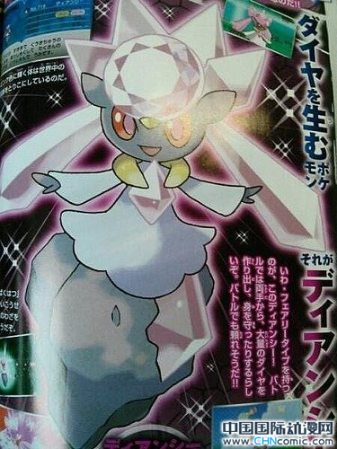曾经一度被黑客从3DS游戏《口袋妖怪XY》中暴力破解出来的3只谜之口袋妖怪其中1位今天终于通过本周的Corocoro杂志得到了证实。这只编号为第719号、名字为"Diancie"、属性为"岩+仙"、"从钻石中诞生"的口袋妖怪将作为7月在全日本公映的新一期剧场版《口袋妖怪: 破坏之茧与Diancie》里的主要角色登场。Diancie会从双手中释放出大量的钻石来保护自己,是战斗中非常值得信赖的小伙伴,而整个剧场版《口袋妖怪: 破坏之茧与Diancie》的故事也会与她的诞生有关。
