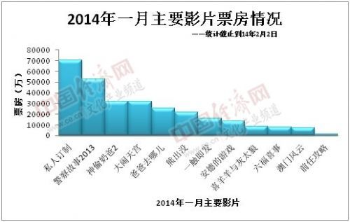 一月电影市场的前期持续低迷,与近期大制作电影的缺席有关。与2013年1月相比,电影普遍成本较低。