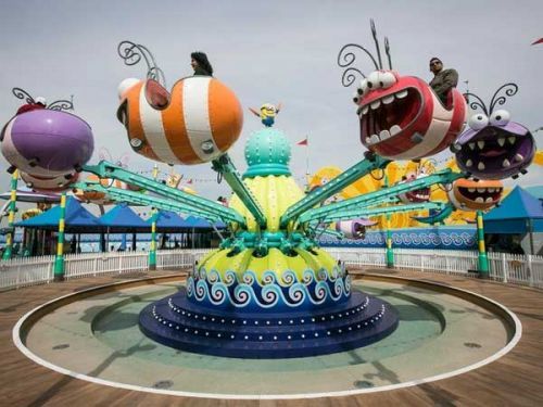 在这个主题公园里,每位游客都能从奈安内博士(Dr. Nefario)手中接过3D眼镜,然后听格鲁和女儿们解释“变身小黄人”的流程,期间会放映大量的小黄人动画,让游客与小黄人“亲密接触”。更过瘾的是,游客还可以被“扔”进动画世界里,通过体感设备体验影片和游戏中曾经出现过的高压水枪、火焰、激光等。