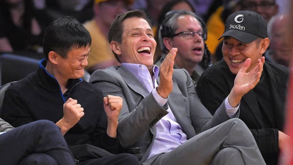 马云与李连杰在美国观看NBA比赛